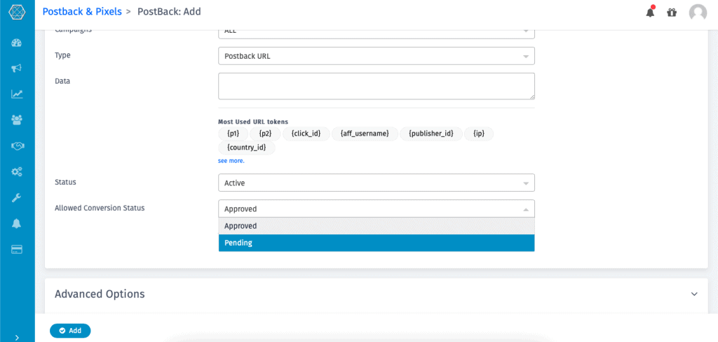 With Trackier you can fire the publisher postback on the pending status of conversions as well. If you are working with your publisher on the validation process and want to show them the number conversion which they have given you, you can enable the option at the time of creating the Publisher Postback. With this option, the publisher will be able to receive the conversion on a pending basis as well.