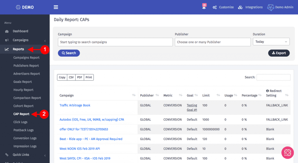 When running an Affiliate Marketing Campaign, if you have a budget from the Advertiser & if you feel it’s going to exhaust, then you can automatically pause the campaign and use the traffic for different converting offers. You can Set CAP for