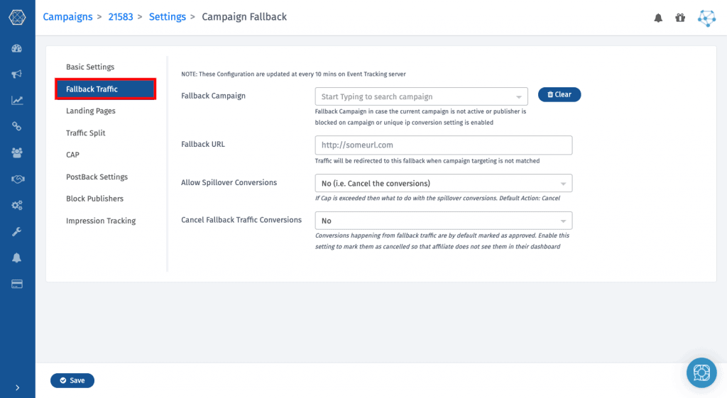 • First, Go to Particular Campaign > Settings > Fallback Traffic
