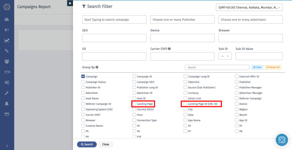 - All the Active landing pages you add in the campaign Landing Page feature will be visible here.