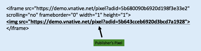 An iFrame pixel can also include a <img> tag of another publisher. For example: